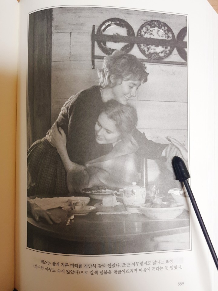 기실, 베스와 로런스 할아버지의 신뢰관계, 에이미의 스케이트 사건, 메그의 무도회, 브룩선생님의 장갑 이야기 , 베스의 성홍열 등 주요서사는 유년시절부터 수없이 반복해서 읽었던 능인출판사의 세계고전 만화책 덕분에(박종관 화백 作) 온전히 기억하고 있었으나, 어린이를 위한 만화책이나 동화책에는 등장하지 않았던, 베스의 죽음과 에이미와 로리의 결혼은 이번 영화와 책을 통해 새로이 접해 매우 놀랍고 마치 새로운 작품을 보는 것만 같았다.