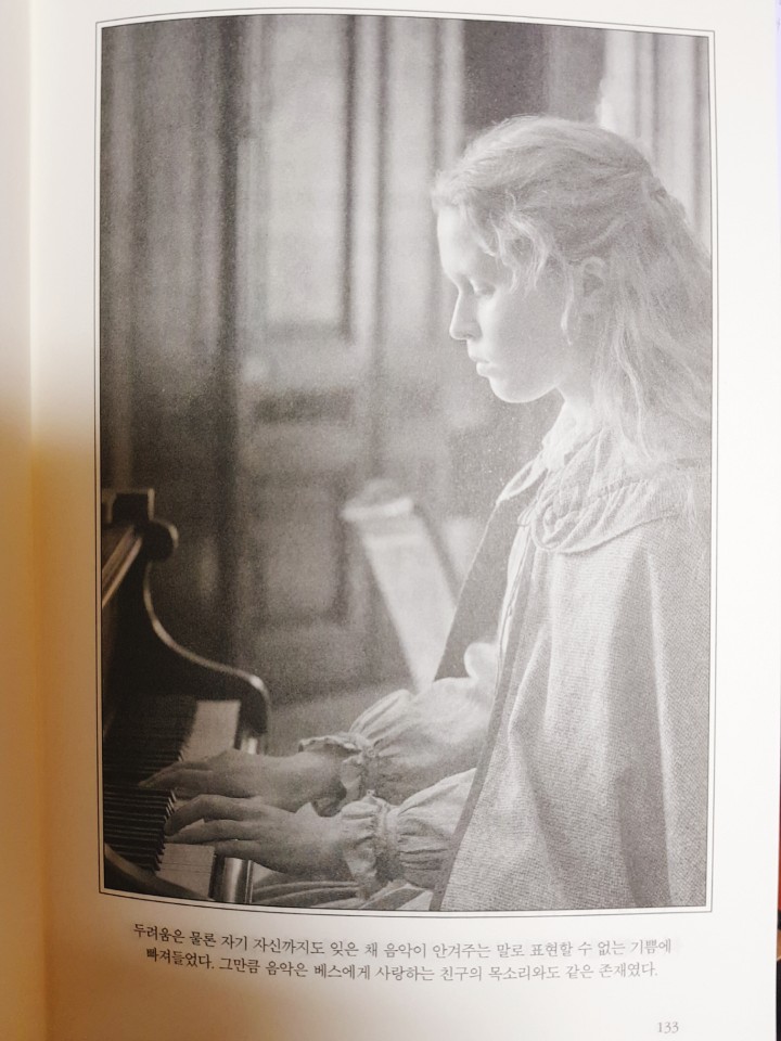기실 나는 유년시절부터 베스를 가장 좋아했다. 그러나 원작소설을 제대로 읽으며, 베스에 대한 애정에 더해 '조'를 재발견하게 되었다. 베스는 작품 곳곳에서 네 자매 중, 아니 세상 그 어느 누구보다 선한 인물로 묘사된다. 어머니가 아버지의 부상 소식에 아버지를 돌보러 떠났을 때, 유일하게 훔멜 씨 가족을 돌보다 성홍열에 걸리기까지 한 정도로 이타적이었으며 로런스 할아버지의 선물에 대한 보답을 하고자 하는 따뜻한 마음을 가진 아이였다. 아마도 유년시절의 내가 베스와 동일시 했던 것은 '인정욕구'때문이 아니었을까 싶다. 베스처럼 내향적인 아이였으며 선생님들께 '모범생'으로 인정받고 싶었던 나는 당연히 베스가 지닌 선(善)의 가치를 최우선으로 두었던 것 같다. 아마도 교사를 꿈꾸게 된 것도 같은 이유 때문이리라. 특히 베스와 로런스 할아버지의 신뢰로운 관계는 참으로 애틋하고 다정한데, 가족 외의 타인을 대하기를 어려워하는 베스가 마음을 열 수 있었던 것은 로런스 씨의 애정어린 시선과 배려 덕분이었다. 나 또한 은사님들의 애정 속에 성장해 온 만큼 베스와 로런스 씨의 관계에 많은 이입이 되었다.