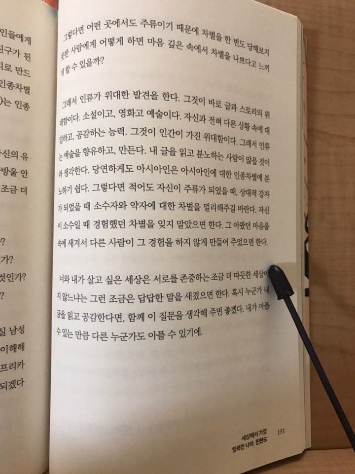 이 책의 저자는 한국 사회 내에서는 학문적으로도(소위말하는 명문대학생) 성별로도 다수자의 위치를 차지하고 있다. 책의 도입부 ‘군대’에 지원했다는 표현이 나오지만 책을 읽어내려가다보면, 특히 후반부인 인종차별 부분에서는 어? 이 작가님이 여성이셨나? 하는 생각이 들 정도로 한국 사회에서 다수자의 자리를 차지하고 있는 분이라는 생각이 들지 않을 만큼 타자를 위한 배려를 통해 그 깊은 사유가 엿보였다.
