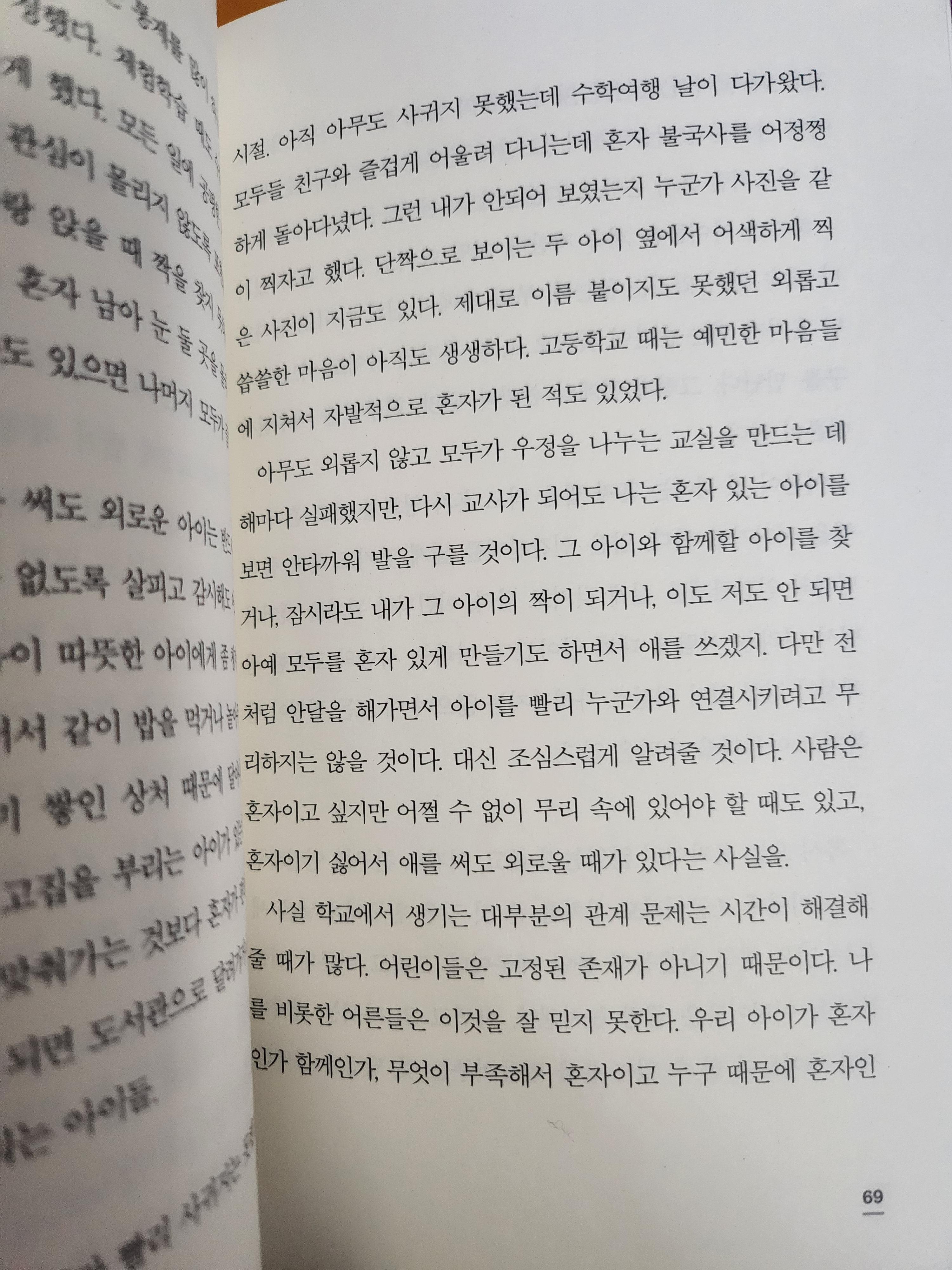 짧지만 울림이 깊은 책이었는데, 특히 책을 읽으며 곳곳에서 나의 학창시절(초중등시절)이 떠올랐기 때문이다.