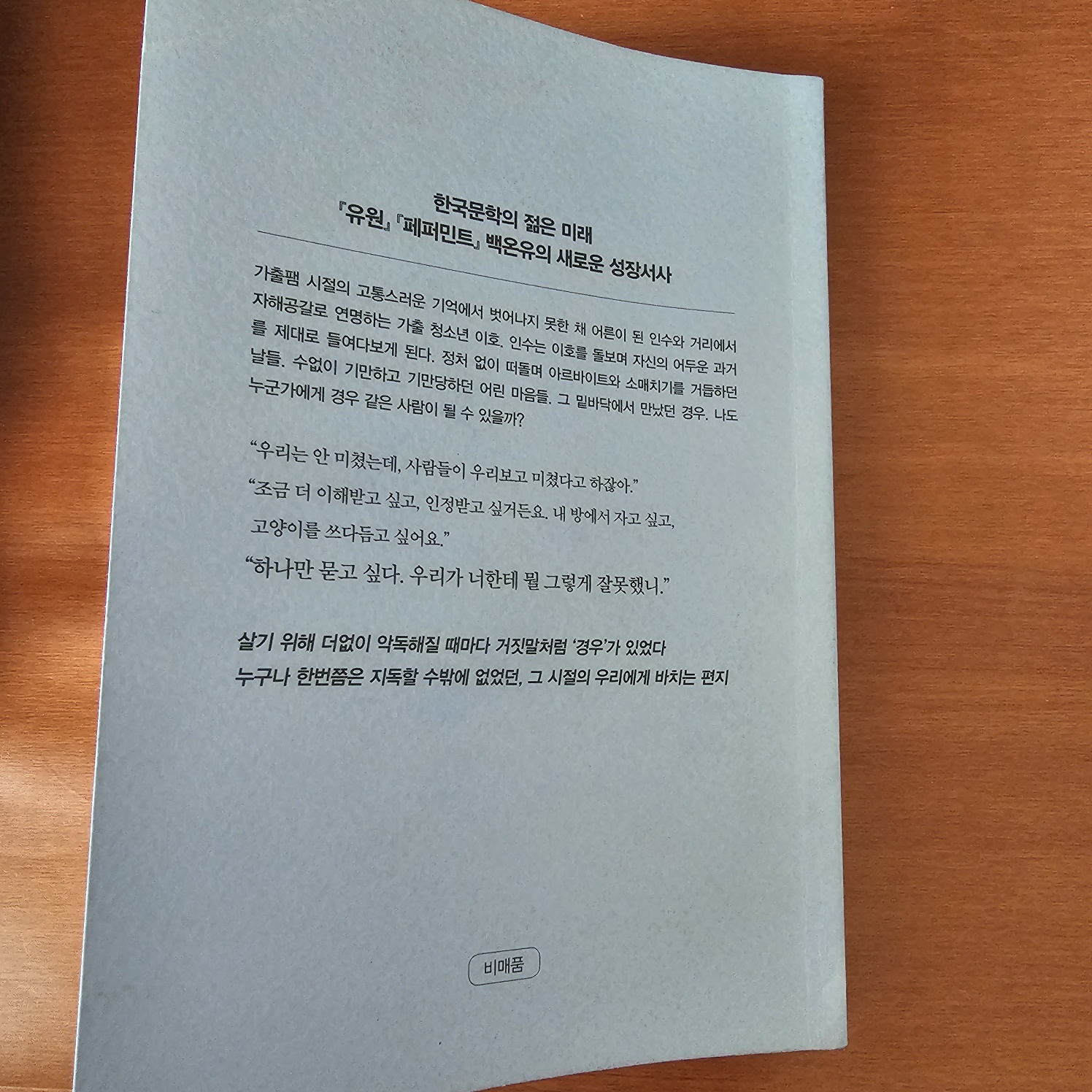 3년 전, 백온유 작가님의 소설 『유원』 사전 서평단에 참여한 적이 있기도 하고, 청소년소설에 늘 관심을 두고 있는지라 금번에 출간 예정인 백온유 작가님의 신간 소설 『경우 없는 세계』 서평단에 지원했다. 『유원』이 PTSD를 겪고 있는 개인의 상처 극복과 성장과정을 그린 작품이라면, 『경우 없는 세계』는 가출청소년을 주인공으로 등장시켜 그들의 내면과 아픈 성장과정을 청소년들 그 자신의 시선에서 그려내고 있는 작품이었다.