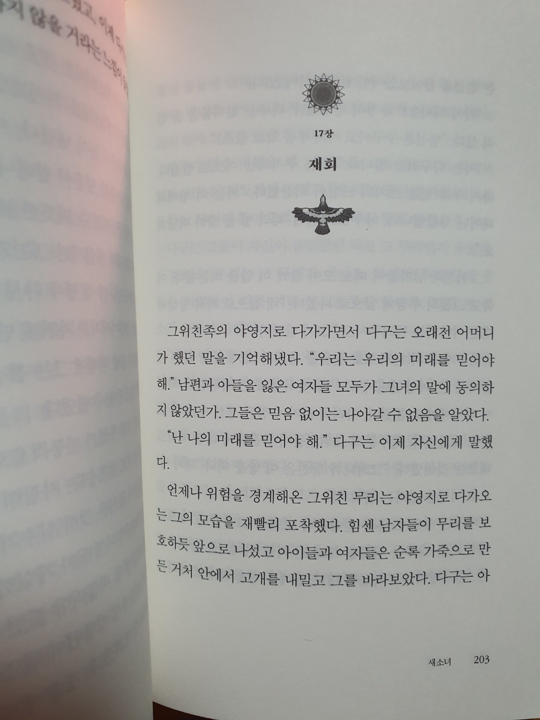 바람과 해와 별이 멀리 있고 가까이 있고는, 사람의 마음에 달려 있음을 그는 알았다. 그를 고향 땅에서 아득히 먼 곳으로 데려간 것은 바로 그의 호기심이었다. 하지만 다구는 긴 여행으로 어떤 대단한 지혜를 얻었다고 여기지 않았다. 그보다는 ‘해의 땅’에서 찾아냈다가 잃어버리고 만 귀중한 삶에 대한 생각에서 헤어날 수 없었다. 이제 그에게 남은 유일한 희망이 있다면, 수년 전 떠나고 싶다는 자신의 조바심 때문에 할 수 없었던 일, 즉 어머니를 보살피는 일을 하는 것 뿐이었다.
